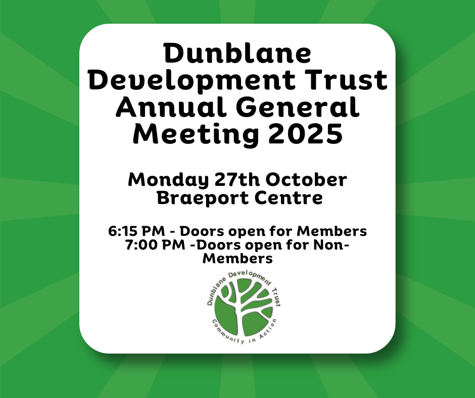 Save The Date for our 2025 AGM at the Braeport Centre! Monday 27th October 2025